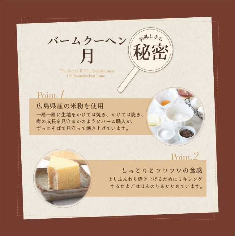生地に瀬戸内レモンと広島県産米粉を使用した、一層一層やさしく焼き上げた しっとりタイプのバームクーヘン