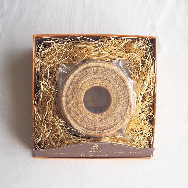 年輪のように一層一層心を込めて丹念に焼き上げました。ソフト・ハードの2つの食感のバームクーヘンをご用意しています。