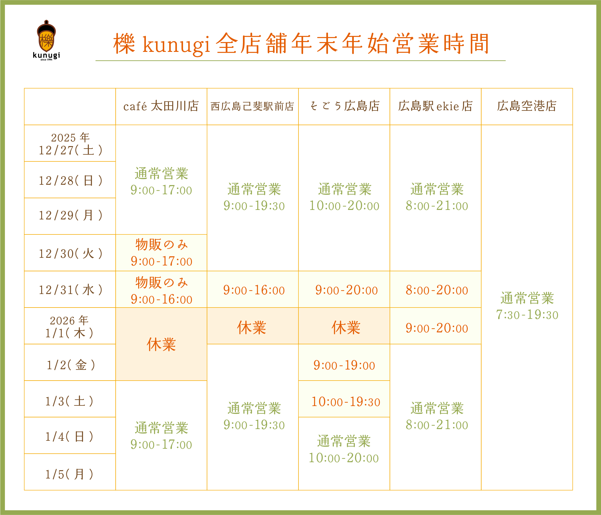 2025-2026 年末年始営業時間について
